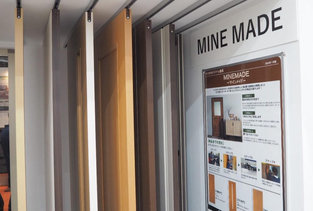 デザインや面材、金物カラーなど、お好みの建具をカタログ(MAINEMADE)よりお選びいただき、ご依頼ください。